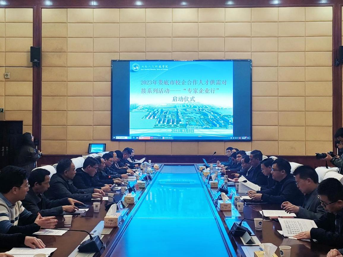202338日,2023年婁底市校企合作人才供需對接“專家企業(yè)行”活動啟動儀式在湖南人文科技學(xué)院舉行。湖南人文科技學(xué)院黨委副書記、校長劉鐵銘,婁底市人民政府原副市長、婁底市企業(yè)聯(lián)合會、企業(yè)家協(xié)會會長余明庭,市工信局黨組成員、副局長肖鑒亮,市企業(yè)聯(lián)合會、企業(yè)家協(xié)會常務(wù)副會長劉福高,參與“專家企業(yè)行”的專家教授等出席啟動儀式。