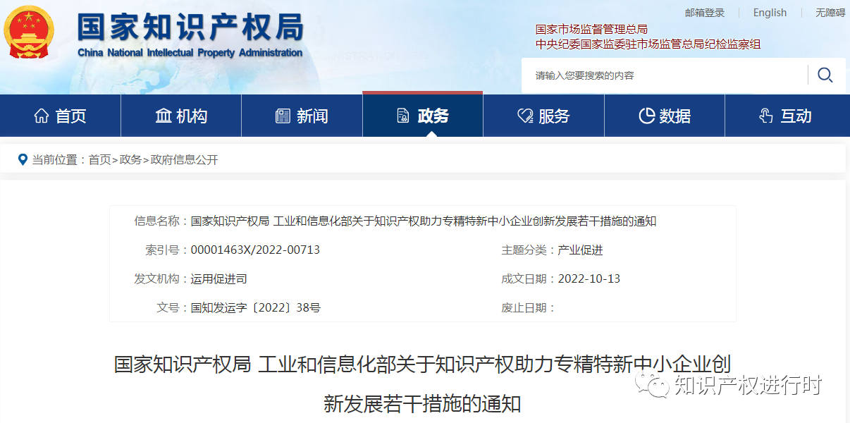 國家知識產權局 工業(yè)和信息化部關于知識產權助力專精特新中小企業(yè)創(chuàng)新發(fā)展若干措施的通知