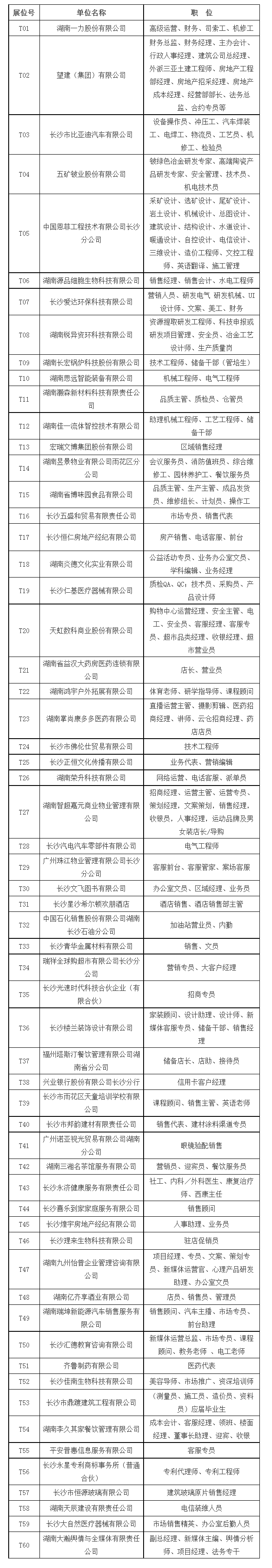 每場次活動根據(jù)活動主題和企業(yè)需求情況,收集相關企業(yè)人才需求,每場篩選60家有招聘需求的企業(yè)參會,企業(yè)可通過撥打聯(lián)系電話(0731-85063729)或登錄線上招聘會專區(qū)預報名,報名成功將有專人對接;求職者如遇相關問題,可通過撥打聯(lián)系電話(0731-85063906)進行咨詢。