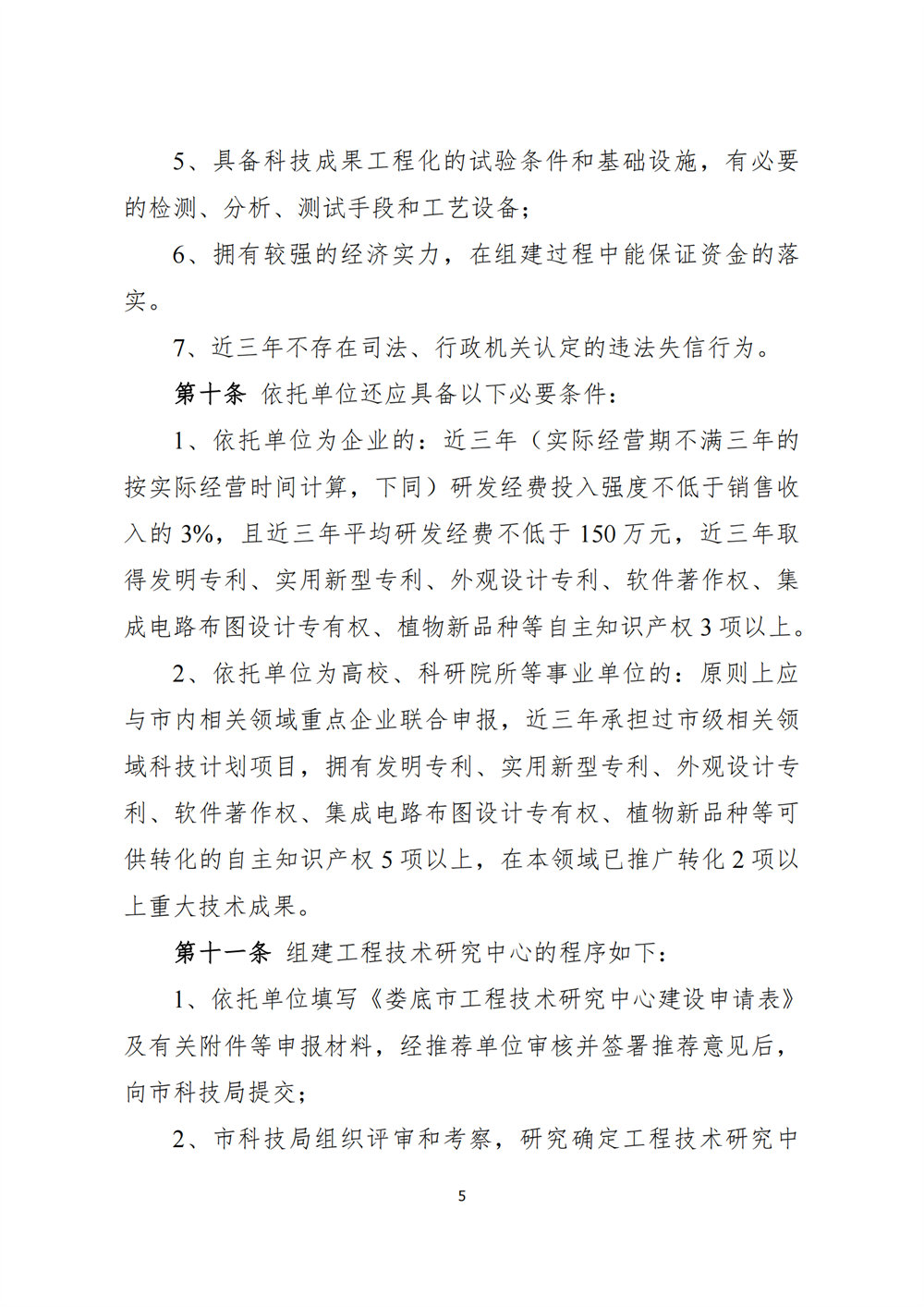 婁底市科學(xué)技術(shù)局關(guān)于印發(fā)《婁底市工程技術(shù)研究中心管理辦法(試行)》的通知
