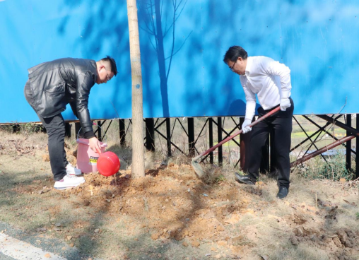 植樹現(xiàn)場,在和煦的春風(fēng)吹拂下,大家手持鋤頭、鐵鏟,干勁十足,三五一組,鏟土造坑、培土圍堰、提水澆灌,配合默契,共栽下銀杏、柳樹、桃樹等500余棵。一株株新栽樹苗迎風(fēng)挺立,呈現(xiàn)出勃勃生機,為初春的歸古景區(qū)增添了一抹盎然生機,為建設(shè)綠色婁底繪就了一片新綠。
