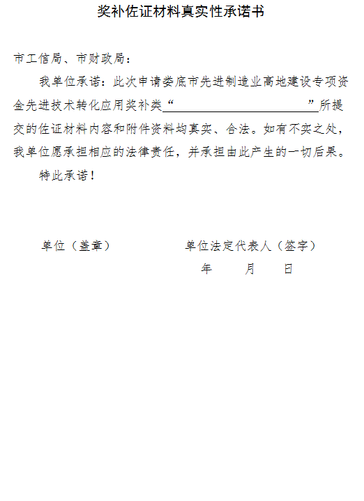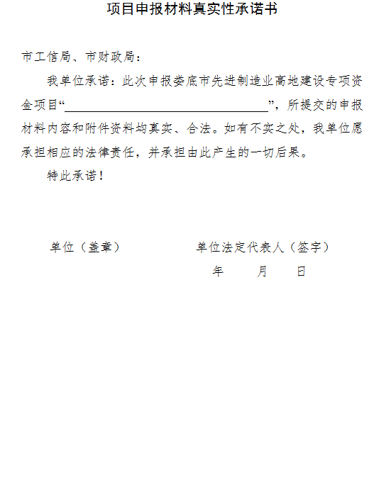 (三)其他要求。各縣市區(qū)須嚴(yán)格按照《婁底市先進(jìn)制造業(yè)高地建設(shè)專項(xiàng)資金管理辦法》(婁財(cái)企〔2023〕147號(hào))文件要求認(rèn)真組織項(xiàng)目申報(bào)工作,項(xiàng)目申報(bào)材料必須真實(shí)齊全。嚴(yán)禁違規(guī)推薦,弄虛作假,一旦查實(shí)有資料作假行為,不予受理其上報(bào)文件,并將影響到對轄區(qū)項(xiàng)目的支持,同時(shí)追究申報(bào)企業(yè)、審批人員的責(zé)任。