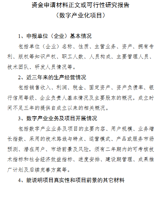 (1)數(shù)字產(chǎn)業(yè)化項(xiàng)目。主要支持互聯(lián)網(wǎng)、軟件和信息服務(wù)等服務(wù)業(yè)和電子信息制造、企業(yè)信息化建設(shè)等制造業(yè)企業(yè)項(xiàng)目;